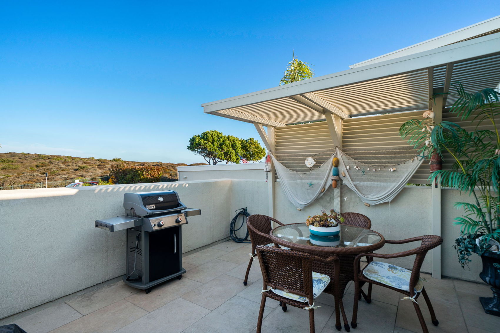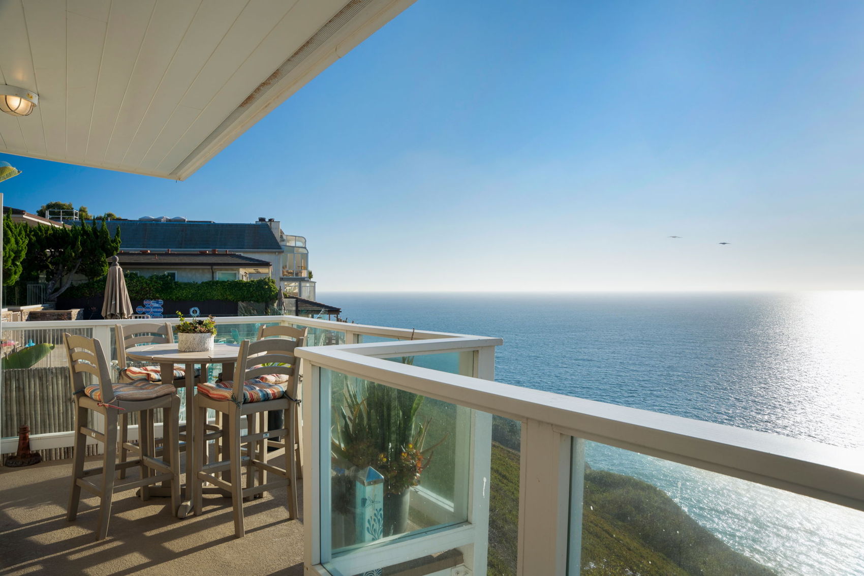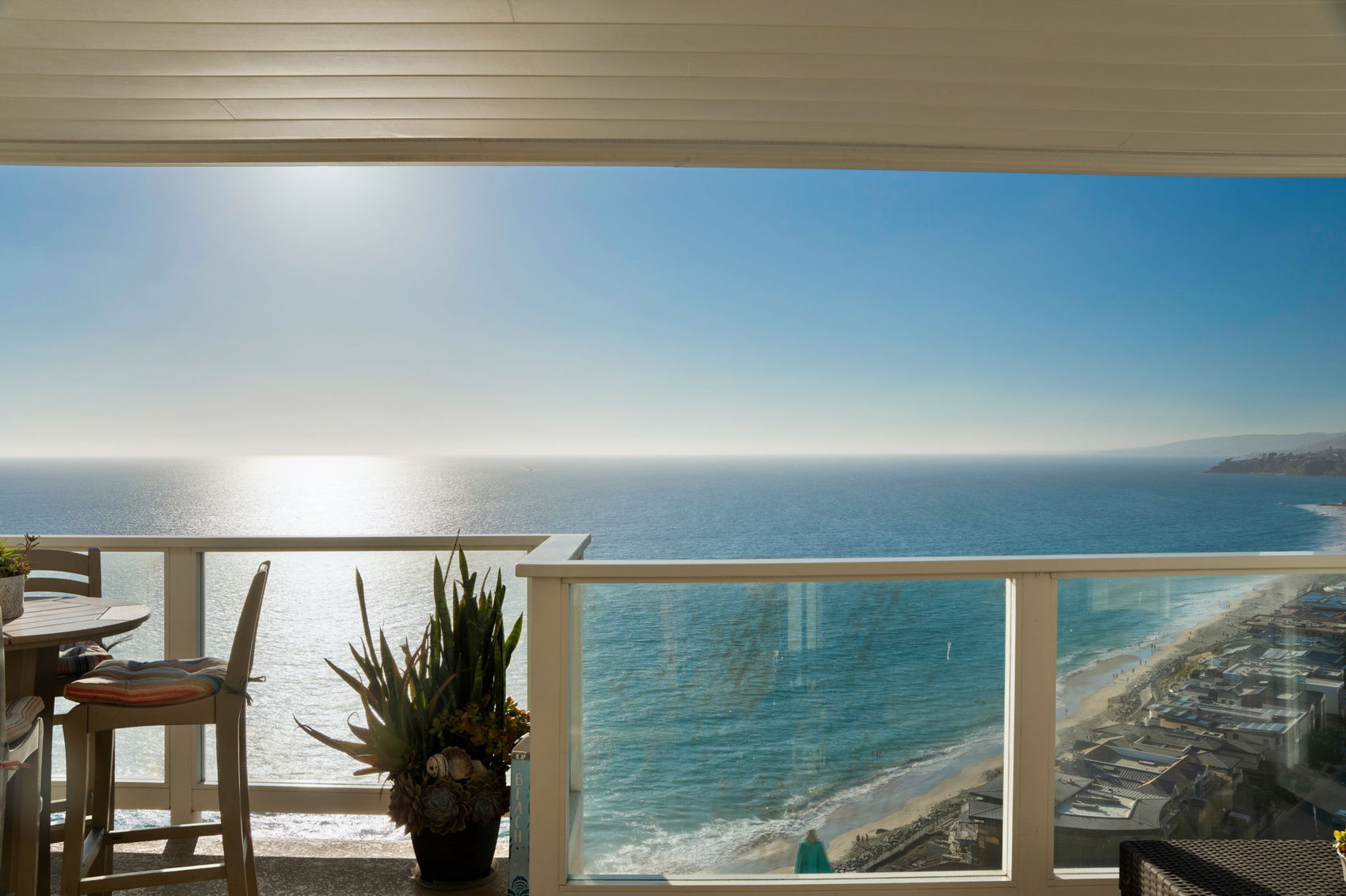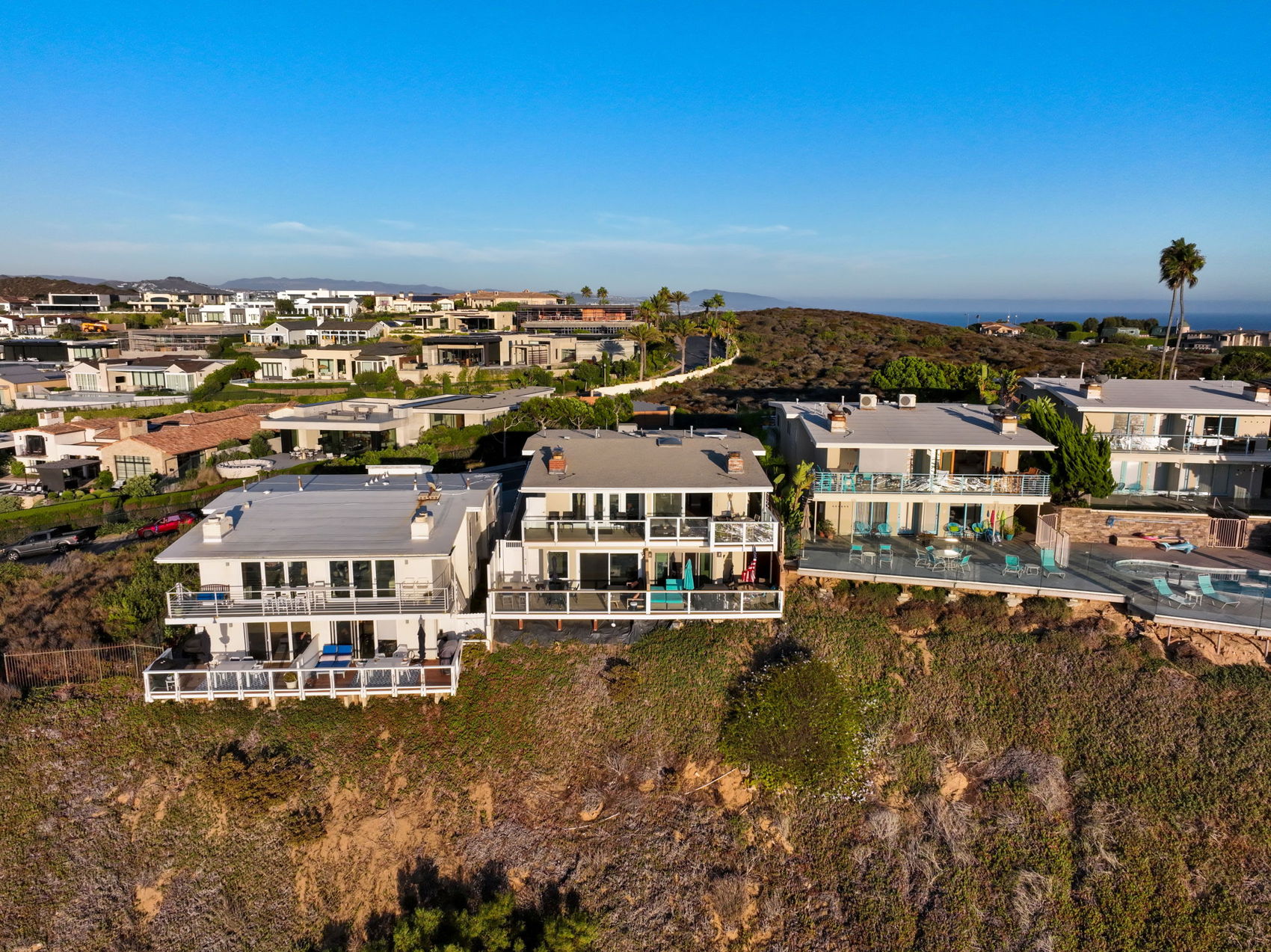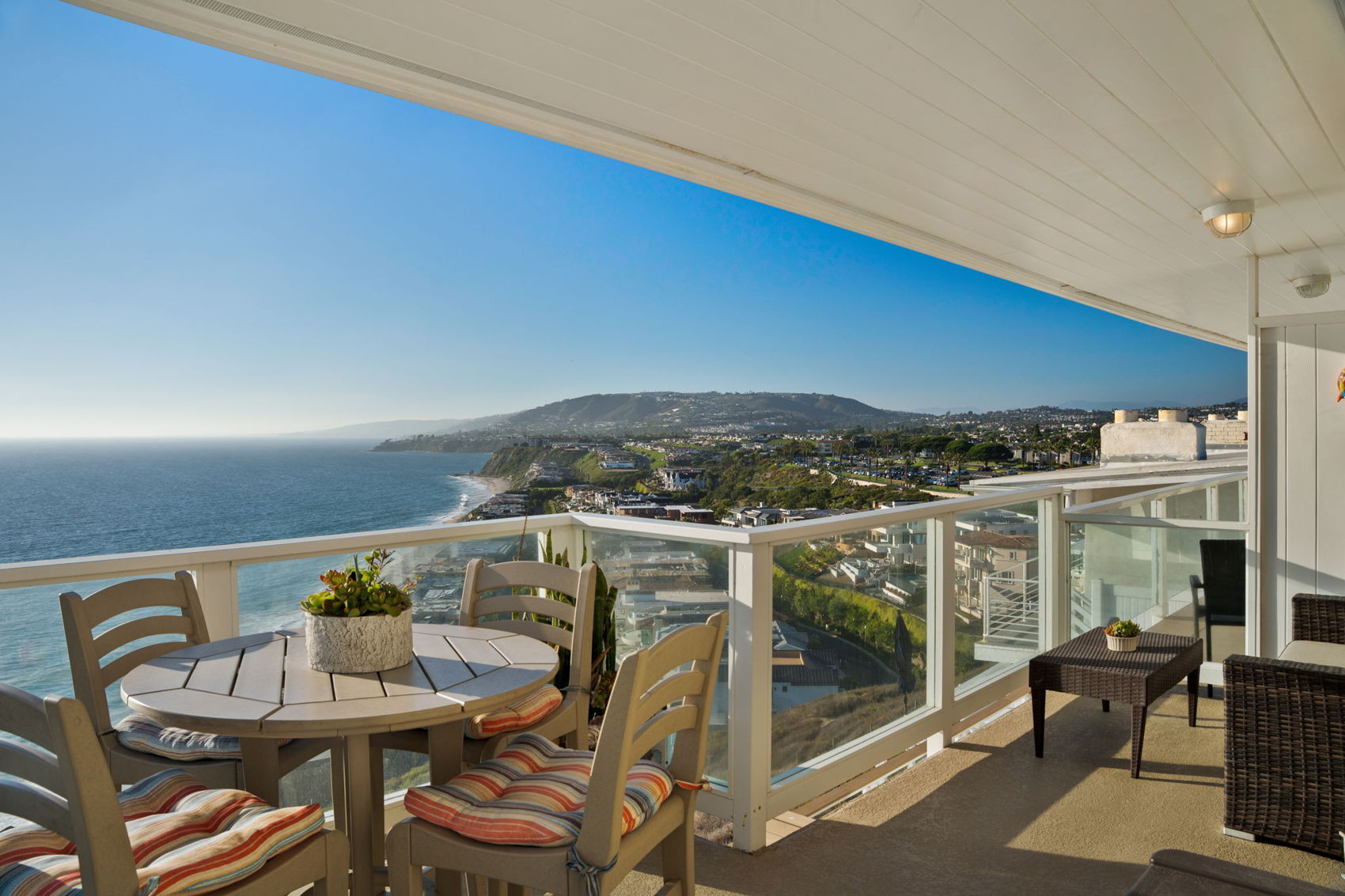 Perched above one of Southern California’s most coveted stretches of coastline, this exceptional two-bedroom, two-bath residence commands an unrivaled setting along the bluffs of Dana Strand Road. Just steps from Strands Beach and bordering The Strand at Headlands, Dana Point’s premier oceanfront enclave, the home offers sweeping, unobstructed 180-degree views that encompass Catalina Island, Palos Verdes, dramatic white-water coastline, rolling hills, city lights, and even Saddleback Mountain in the distance. Completely reimagined and taken down to the studs in 2015, this top-floor condominium blends timeless craftsmanship with modern sophistication. Inside, soaring cedar ceilings crown an open-concept layout where living, dining, and kitchen spaces flow seamlessly. Expansive glass doors frame endless ocean vistas and open to a private balcony with sleek glass railings, creating a perfect setting for enjoying sunsets, sea breezes, and the soothing sound of waves. The primary suite is a serene retreat, appointed with custom built-ins, a dedicated work space, and a spa-inspired bath. Its private balcony, finished with limestone flooring and a pergola, captures tranquil views of the coastal reserve and glittering city lights. Throughout, the home showcases refined finishes including porcelain tile flooring, recessed lighting, solid-core doors, insulated walls, and a striking stone fireplace that anchors the living space. Additional highlights include skylights, a tankless water heater, an upgraded furnace, and the convenience of both a private garage and driveway parking. Beyond the home itself, the location is unparalleled. Elevated above more than a mile and a half of protected shoreline and 70 acres of preserved natural space, residents enjoy direct access to scenic parks, coastal trails, and Dana Point’s vibrant lifestyle. World-class golf, luxury resorts, fine dining, yachting, and entertainment are just minutes away—yet at home, each day feels like a private coastal sanctuary where the beauty of the sea is always at your doorstep. This exceptional property is also set to benefit from the exciting Dana Point Harbor revitalization project.